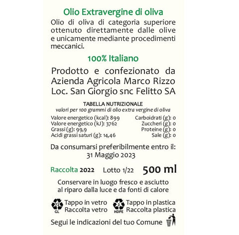 Olio EVO Impronta blend di varietà cilentane Marco Rizzo
