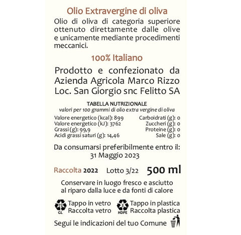 Olio Extra Vergine Oliva biologico Incipit Marco Rizzo